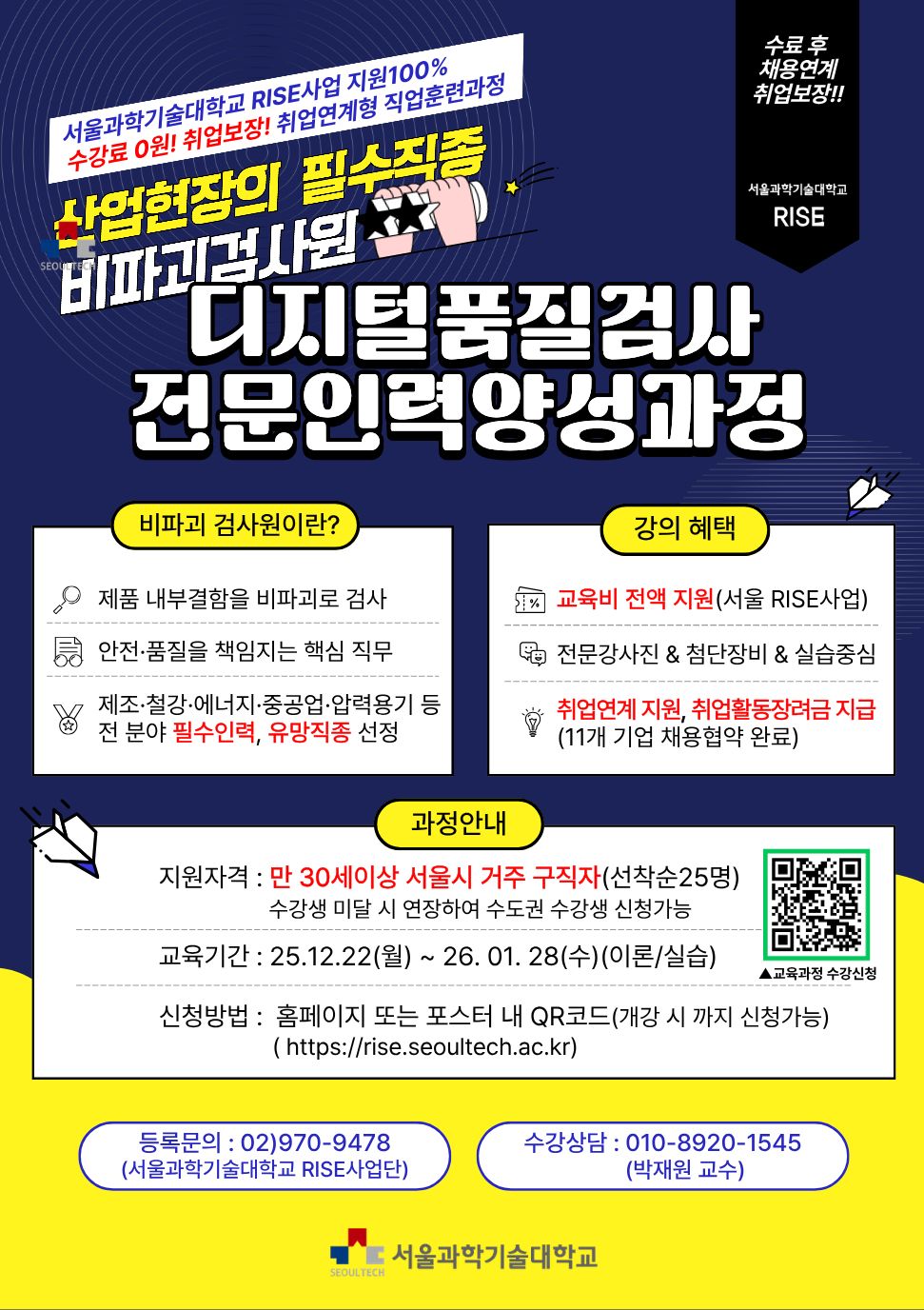 [서울RISE사업] 2025 채용연계형 “디지털 품질검사 전문인력 양성과정” 훈련생 모집 안내